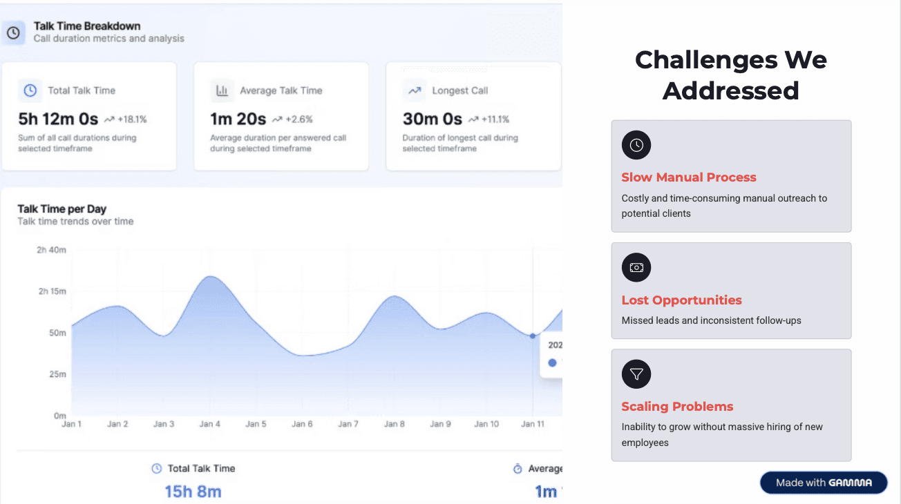 The Transformation: Rousing AI deployed an intelligent voice AI system that automated 99.9% of lead qualification while maintaining human-level conversation quality. Using advanced voice cloning technology and strategic AI implementation, we rebuilt their entire lead qualification process from the ground up.